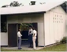 Stiff Japanese resistance and heavy rains, however, brought the advance to a halt in July 1945, just after the Australians reached the Mivo River.[19] As a result Buin remained under Japanese control until the end of the war in August 1945. The northern and western Solomons long remained world-famous because two later presidents of the USA served in the U.S. Navy in this area, Lt. Richard Nixon on Green Island just north of Buka, and Lt. John F. Kennedy on a patrol torpedo boat based on Rendova Island.[20]