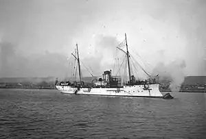 Nadezhda served as a royal yacht for the King of Bulgaria, the aft part of her deck house being converted into a lounge. In 1912 she ran aground, but was soon refloated and repaired.[3] During the First Balkan War, she was disarmed due to her poor condition. Her guns were soon fitted again but were landed once more in 1915. In September 1918, she was taken to Sevastopol for repairs, but her crew abandoned her there in December that year.[4]