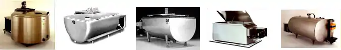 In dairy farming a bulk milk cooling tank is a large storage tank for cooling and holding milk at a cold temperature until it can be picked up by a milk hauler. The bulk milk cooling tank is an important piece of dairy farm equipment. It is usually made of stainless steel and used every day to store the raw milk on the farm in good condition. It must be cleaned after each milk collection. The milk cooling tank can be the property of the farmer or be rented from a dairy plant.