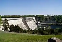 Bull Shoals Dam was created to impound the White River by one of the largest concrete dams in the United States and the 5th largest dam in the world at its inception.[1] Work on the dam began in 1947, was completed in 1951 and dedicated by President Harry S. Truman in 1952. At least seven small family cemeteries and 20 larger cemeteries were meticulously relocated to accommodate the new lake.[2] Recent national events include Brostock 2010 and 2011 and the TBF Bass Federation and Bassmaster Elite Series Tournaments in 2012.