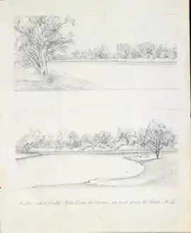 ![]() Sketch of Bulloo River area near the Kooliatto Waterhole, 1861 by Hermman Beckler, member of the Burke and Wills expedition | |||||||||||||||
