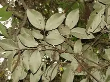 Bunchosia argentea, known as silver peanut butter fruit,[2] is a species of flowering plant in the acerola family, Malpighiaceae, that is native to Venezuela, Colombia, Peru, Brazil, Guyana and Suriname.[1] It produces small orange-red fruits that are sericeous (finely haired) of pleasant taste similar to peanut butter. Leaves have pointed ends and are densely silvery or golden sericeous on the abaxial side. The species has been cultivated by a small, independent plant nursery[3] on the Hawai'ian island of O'ahu and is also available in the Rio Grande Valley of far southern Texas.[4]