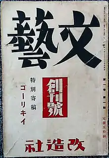 Bungei (文藝, "Fiction") is a Japanese literary magazine, published by Kawade Shobō Shinsha. It was founded in 1933, and was originally published monthly, but became a quarterly in the 1980s. The magazine oversees the Bungei Prize, an open competition for discovering new writers. Writers such as Yasuo Tanaka, Akemi Hotta, Risa Wataya, and Natsu Minami are former prize-winners.