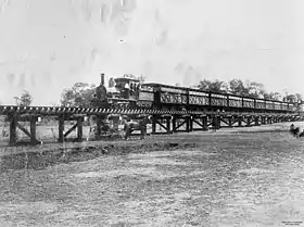 The creek floods regularly, once inundating hundreds of properties in Roma. In March 2010, Bungil Creek experienced a major flood of 8.1 metres (27 ft);[2] with a peak flood height of 7.6 metres (25 ft) in April 2011.[3] Government funding enabled the construction of a levee for flood mitigation after devastating flooding in 2012. A ceremony to mark the commencement of construction for Stage 1 of a 5.2-kilometre (3.2 mi) long levee was held in September 2013.[4]