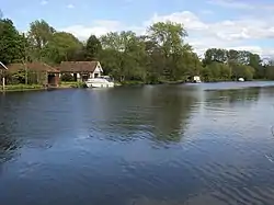 The village, lying mainly between the main road and the Thames, became a desirable Thames-side residential area in the late 19th century. Almost all the earlier housing was pulled down. The only survivors from before the Victorian era are the Grade II listed Old Cottage, thought to be Tudor, and the 16th-century pub premises.[3] No other building dates from before 1888.[2] The poet laureate John Masefield lived at Burcote Brook from 1932 until his death in 1967. Shortly afterwards, the house burnt down and was replaced by a Cheshire Home,[4] which is named after him.[5]