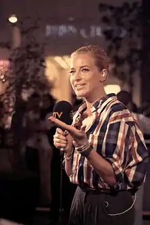 Burcu Esmersoy (born 2 October 1976)[1] is a Turkish anchorwoman, journalist, model, occasional actress, and former beauty pageant contestant who represented her nation at Miss International in Japan. She received a Golden Butterfly for Best Female Presenter.[2] Burcu Esmersoy is one of Turkey's leading female reality show hosts and highest-paid television personalities.[3][4][5] Amongst the Turkish television shows hosted by Esmersoy are Ver Fırına, Survivor, Popstar, Nedir Ne Değildir, Late Summer Night with Burcu Esmersoy, Komedi Türkiye, En Güzel Bölüm, Elin Oğlu, and Dancing with the Stars. As an actress, she starred in Romantik Komedi (2010), Dedektif Memoli (2011), as Aylin Youlin in Çocuklar Duymasın (2012), and as special guest star Melda in Bir Erkek Bir Kadın (2013), Turkish adaptation of the French-language Canadian comedy television series Un gars, une fille.