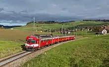 Double set, each with a BCe-4/4 power car in front and behind, in Konolfingen.