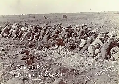 The free burghers who settled permanently in South Africa brought about the inception of the Boers who migrated further to the interior of South Africa. Several expansions such as the Trekboers and the Great trek[1] led to the establishment of the Boer republics in 1852. Typically a citizen of the Orange Free State would be referred to as a 'Burgher of the Free State'.[2]