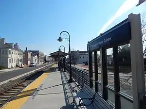 Burlington Towne Centre is a station on the River Line light rail system, located on West Broad Street in Burlington, Burlington County, New Jersey, United States within the Burlington Historic District. The tracks run in the middle of the street in a thin trench, so while it does run in the middle of the street, it is not considered "street running." Like many other River Line stations, the Towne Centre station is made up of a raised, accessible platform with ticket machines and a small passenger shelter. Of note, the station name uses the spelling "centre" rather than the more usual "center".