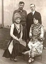 Milton Sills and Doris Kenyon during the filming of Burning Daylight, with their guests Lizzie Yu Der Ling and her husband Thaddeus White.