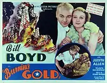 Burning Gold is a 1936 American drama film directed by Sam Newfield and starring William Boyd, Judith Allen and Lloyd Ingraham.[1] It is a modern-day western about a World War I veteran who becomes a wildcat prospector for oil and enjoys a major strike.