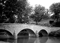 Crossing over Antietam Creek, the bridge played a key role in the September 1862 Battle of Antietam during the American Civil War when around 500 Confederate soldiers from Georgia under General Robert Toombs and Henry Benning,[3] for several hours held off repeated attempts by elements of the Union Army's IX Army Corps, whose leader was Major General Ambrose E. Burnside, to take the bridge.