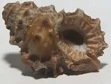 ![]() Apertural view of Bursa corrugata (Perry, 1811) with operculum. | |