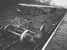 On 20 April 1980, a passenger train heading for Bletchley derailed immediately before Bushey station after hitting track maintenance machinery. The leading bogie of the Class 310 EMU derailed, but the train remained upright and damage was slight. One member of the track maintenance team sustained a broken pelvis.[5]