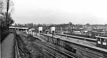 During the war years of 1939-1945 the station was often known as "Ampersand" - this was due to a typically bureaucratic application of emergency regulations. To hinder enemy troops in the event of an invasion it was ordered that all station names should be painted out on station name-boards, and this was interpreted at Bushey & Oxhey to mean the words 'Bushey' and 'Oxhey' but not the '&'. For the duration of the war, therefore, the station bore the designation '&'.[2] Also during wartime a concrete pillbox (a small gun fortification) was provided under the viaduct, between platforms 2 and 3.