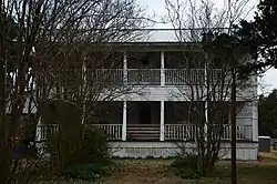 The house built by Butler was destroyed by fire in 1921, and it was replaced by the present I-house in 1922 by Ben Matthews. It has a main block two stories high, with a two-story shed-roof porch spanning its front. A single-story gabled ell projects from the rear of the house.