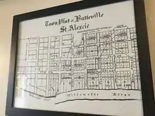 Town plat from survey by R. V. Short in 1859, currently on display inside the Butteville Store.