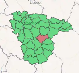 Buturlinovsky District (Russian: Бутурли́новский райо́н) is an administrative[1] and municipal[6] district (raion), one of the thirty-two in Voronezh Oblast, Russia. It is located in the center of the oblast. The area of the district is 1,802 square kilometers (696 sq mi).[2]Its administrative center is the town of Buturlinovka.[1] Population: 52,575 (2010 Census);[3] 57,204 (2002 Census);[8] 60,915 (1989 Census).[9] The population of Buturlinovka accounts for 51.8% of the district's total population.[3]
