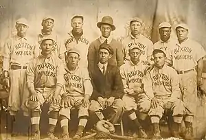 In 1909, The Buxton Wonders won one game and lost one game in Buxton, Iowa against the Chicago Union Giants, facing pitchers, "the Lyons brothers" Jimmie Lyons and Bennie Lyons.[3] The Wonders were one of few teams to beat the Chicago Union Giants that year, where the team won 46 out of 56 games played.[3] The Union Giants appear to be regular visitors to Buxton's team.[4]