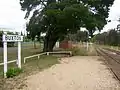 The station is located on a crossing loop. The station building has been demolished after burning down. Current platform and sign built 1990s.