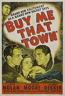 Buy Me That Town is a 1941 American comedy film directed by Eugene Forde and written by Murray Boltinoff, Harry A. Gourfair, Gordon Kahn and Martin Rackin. The film stars Lloyd Nolan, Constance Moore, Albert Dekker, Sheldon Leonard, Barbara Jo Allen, Edward Brophy and Warren Hymer. The film was released on October 3, 1941, by Paramount Pictures.[1][2]