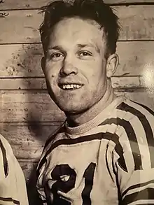 When North Dakota was preparing to bring back its ice hockey program after World War II, brothers Buzz and Prince Johnson were playing amateur hockey for the Grand Forks Amerks and came to the attention of Cal Marvin, who was leading the effort to rekindle the team.[3] Both players began attending the University of North Dakota and made their debuts in the 1947–48 season. The team played well with Johnson on the team, posting their first double-digit win season. The team flagged the following year because Johnson had played well enough to be included on the US national team for the 1949 Ice Hockey World Championships.[4] While missing the entire season for North Dakota, Johnson was nearly a point-per-game player over the eight games as the US won the bronze medal. He did, however, have an even greater impact after the championship was over; Zdeněk Marek, a member of the gold-medal-winning Czech team had decided to hide in Stockholm rather than return to Czechoslovakia because he was not a member of the Communist Party. During his time playing for the team he had confided his trepidation at returning home to Johnson and his brother. The two promised to assist Marek in earning a student visa so he could defect to the United States. The plan came to fruition when North Dakota offered Marek a scholarship on July 12, 1949.[5] Marek was eventually granted permanent resident status by an act of congress and lived in the United States until his death in 2019.[6]