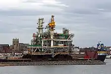 ![]() An oil platform departing Hartlepool for the Buzzard field in 2010 | |