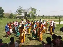 ![]() Boro Girls performing bwisagu dance in traditional attire | |