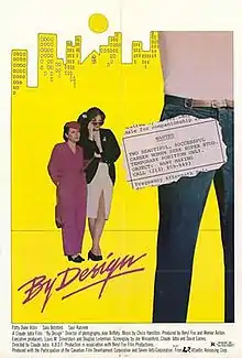 By Design is a 1982 Canadian comedy-drama film directed by Claude Jutra and starring Sara Botsford and Patty Duke.[1] The film was produced by B.D.F. Productions, Canadian Film Development Corporation (CFDC), Fox Productions, and Seven Arts.