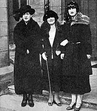 The Marsh family who were Americans owned Bylaugh Hall until 1947. Henry Wheelwright Marsh (1860-1943) seems to have bought the Hall in 1917. He was one of the founders of the insurance brokerage firm Marsh and McLennan with headquarters in Chicago and New York. In 1904 he married Agnes Elizabeth Power (1876-1947) who came from Boston Massachusetts. The couple had no children but they loved to entertain. They made their home in England, while Henry 'commuted' to the US by steamer and before settling for Bylaugh had leased many notable historical buildings. Some of these included Medmenham Abbey, Knebworth House and Warwick Castle.[8] While they still held the lease on Warwick Castle it seems that they decided to buy their own property and so purchased Bylaugh Hall. They continued to entertain at Warwick Castle after their purchase and a photo of Mrs Agnes Marsh with two members of Russian royalty at one of their house parties is shown. They were separated in 1926 and Agnes made her home at Bylaugh.