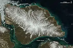 ![]() July 2012 NASA satellite photograph of Bylot Island | |