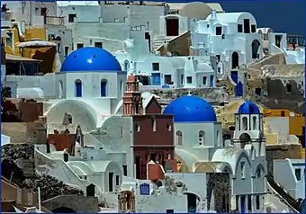 Byzantine blue is a color ranging from light celestial blue or lazuli to dark Egyptian blue.