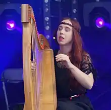 Cécile Corbel (born 28 March 1980, in Pont-Croix, Finistère, France) is a French and Breton singer, harpist, and composer.[1] She has released five albums of original music and worked for Studio Ghibli as a composer for its 2010 film, The Borrower Arrietty.[2] Corbel sings in many languages including French, Italian, Breton, and English and has done songs in Spanish, German, Japanese, Irish, and Turkish. Her lifelong partner is songwriter Simon Caby, who is also her co-composer.[3]