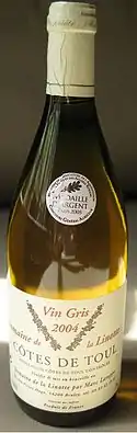 Côtes de Toul is an Appellation d'Origine Contrôlée (AOC) for French wine produced in the département of Meurthe-et-Moselle in the Lorraine région. The Côtes de Toul vineyards cover 110 hectares (270 acres) in an area close to Toul, to the west of the city of Nancy. The area of production includes the following communes: Blénod-lès-Toul, Bruley, Bulligny, Charmes-la-Côte, Domgermain, Lucey, Mont-le-Vignoble and Pagney-derrière-Barine.[1] Annual production is 4,500 hectoliter, corresponding to 600,000 bottles.[2]