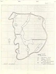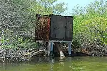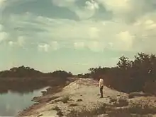 Construction plans called for completion of a perimeter dike around the subject section of islands, with the dike carried inside of a shell midden to avoid flooding tropical vegetation found there.[6] A pump house allowed flooding of the impoundment during the summer rainy season when mosquito breeding is most intense. Flapper valve gates at the north and south ends of the impoundment were installed to allow closure during flooding and opening during the dry season to allow water exchange with the lagoon.