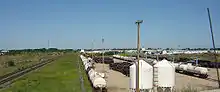 The Grand Trunk Bridge (Saskatoon) or CN Bridge crosses the South Saskatchewan River between the Queen Elizabeth Power Station on the upstream (west) side and Diefenbaker Park on the downstream (east) side. The train bridge commenced construction work in 1906 with rail line service beginning on September 21, 1908.[1] A southwest extension of Circle Drive, which opened in July 2013, passes through C.N. Industrial.[2] Access to businesses in C.N. Industrial is facilitated via an interchange at Lorne Avenue, but the area is now split into two sections with Jasper Avenue no longer crossing Circle Drive.