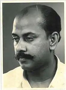 Sreekanatan Nair, whose body of work comprises 10 plays, 4 short story anthologies and a book of non-fiction,[5] is best known for his Ramayana-based trilogy,[6] Saketham, Lankalakshmi and Kanchana Sita.[7][8] Ayyappa Panicker, a noted poet and scholar, observed that Lankalakshmi brought out the playwright in Sreekantan Nair, while Saketham and Kanchana Sita highlighted the poet and the philosopher in the playwright.[9] His first major play was Nashtakachavadam, which was a short story in the beginning but was later rewritten as a play in 1957 and Kali a play he wrote in 1967 is known as the first surrealist play in Malayalam literature.[1] Nair, who experimented with stage direction and concepts of theatre,[10] co-founded Nataka Kalari, a Kollam-based forum for the promotion and practice of theatre; several known writers and artists such as M. Govindan, Ayyappa Panikkar, G. Aravindan, Kainikkara Kumara Pillai and G. Sankara Pillai were involved with the movement.[11] "Thanathunatakavedi", the idea of having a theatre involving indigenous art forms of Kerala was first evolved from C.N. He published an article "Thanathunatakavedi" in 1967 detailing his thoughts. He was the organiser of the 5th All India Writers Conference at Eloor, Kerala and The World Parliament of Religions in 1968 at Sasthamkotta, Kerala.