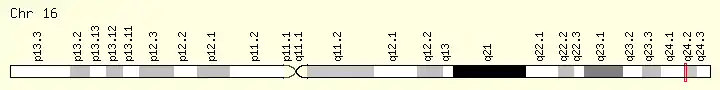 C16orf95 is a Homo sapiens gene oriented on the minus strand of chromosome 16. It is located on the cytogenic band 16q24.2 and spans 14.62 kilobases.[1] The gene contains 6 introns and 7 exons.[1]