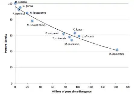 | Genus and species | Common name | NCBI accession | Date of divergence | Sequence identity |