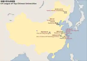 The C9 league comprises China's leading public research universities.[3] Its members are: