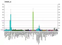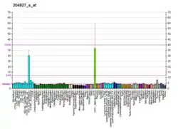 Cyclin F mRNA is expressed in all human tissues, but at different quantities.[7] It is found most abundantly in the nucleus, and the quantity levels vary during the different stages of cell cycle.[7] Its expression pattern closely resembles the one from cyclin A. Cyclin F levels begin to rise during S phase and reaches its peak during G2.[7]