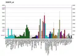 The gene is expressed in hemopoietic, endothelial, and epithelial cells. It is absent from erythrocytes, platelets, and neutrophils.