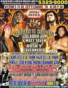 | 6 | Rush and Bárbaro Cavernario defeated Matt Taven and Volador Jr. | Best two-out-of-three falls tag team Lucha de Apuestas, hair vs. hair match[9] | 23:04 |