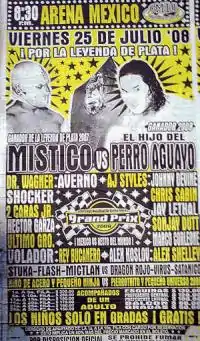 The main event for the 2008 Leyenda de Plata tournament was a singles match between CMLL's top tecnico Místico and one of CMLL's top rudo workers, Perro Aguayo Jr., who had been long-time rivals even prior to the match. Aguayo Jr. won the first fall pinning Místico, while Místico won the second fall with an armbar submission. After the second fall, Aguayo Jr. claimed he needed to have his arm checked out by the doctor, stalling for time and seeking to frustrate his opponent. During the third fall Aguayo's fellow Los Perros del Mal teammates came to the ring, but their interference was stopped by Dos Caras Jr. and Héctor Garza, allowing Místico to win the third fall and the Leyenda de Plata tournament for the third year in a row.[1][12]