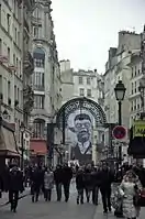 Late Spring, COMBO came back to Paris and settled down in the rue des Petits-Carreaux for his second exhibit, getting a lot of attention both from the neighborhood and the Internets by pasting up a +30 ft. high portrait of a dandy version of Yoda.[10] As opposed to most of his projects since Chernobyl, Old-Up didn't have any political dimension, allowing him to get back to his roots: cartoon.
