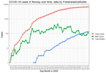 - "Development of number of Coronavirus cases:Norway". coronalevel.com/Norway. Retrieved 1 May 2022.
