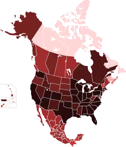 | Map of confirmed cases per million by country.[10][note 2][note 3] |