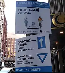 On May 28, Mayor Walsh announced a new "healthy streets" program to promote social distancing in the roads of Boston. The buses and MBTA trains would not accept as many passengers. Bike lanes would be built fast, to allow social distancing for bikes.[34] On May 29, the City of Boston released a "return to workplace framework" to safely reopen workplaces. Social distancing of 6 feet was to be enforced in all workplaces. Workplaces were to reduce capacity, ensure access to handwashing facilities, and clean and disinfect frequently.[35]