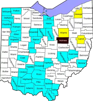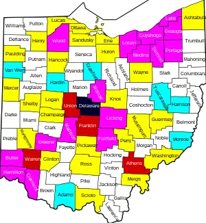 In late June and early July, some counties in Ohio experienced a sharp increase in cases.[26]