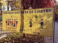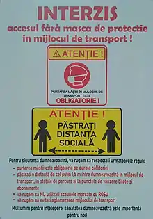 On 22 April, President Iohannis issued a press release, stating the government's intention to adopt, by mid-May, official legislation requiring citizens to wear surgical masks in public.[89] That same day, Timișoara, Romania's third largest city, made the use of both facial masks and protection gloves mandatory in enclosed public spaces, including transportation.[90] This decision came a week after Constanța, a major urban centre and one of the country's main tourist destinations, took similar measures on 15 April.[91]